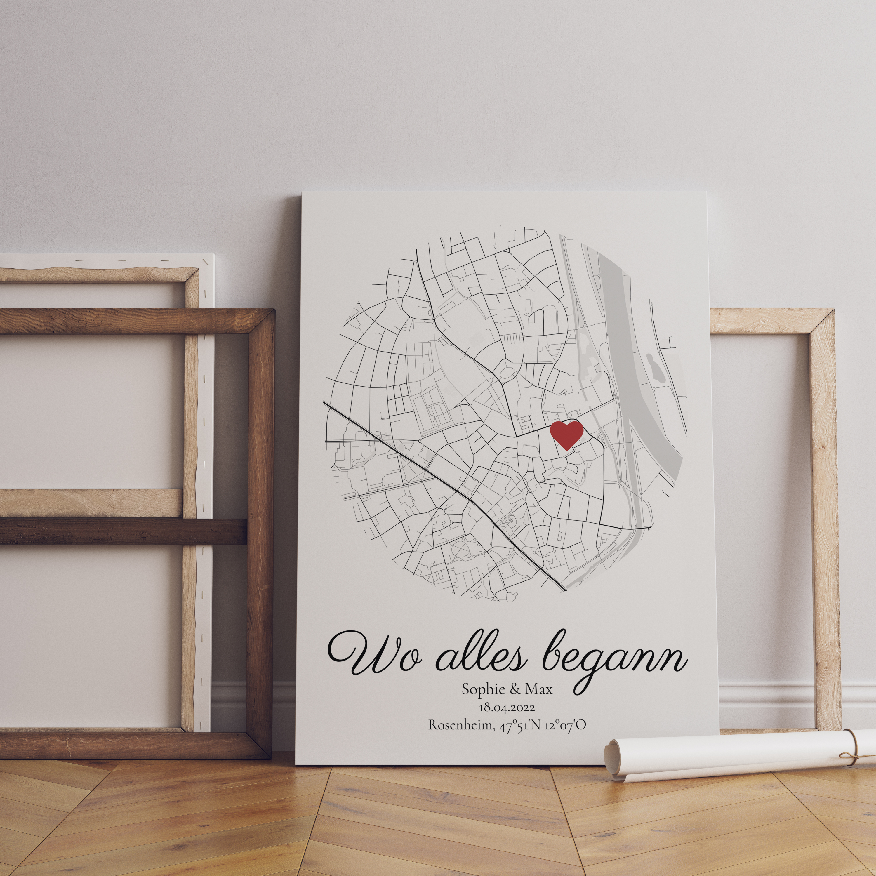 Wo alles begann; Individuelles Geschenk für Freund, Freundin erstellen; Druck auf Acryl, Alu-Dibond, Poster, gerahmt, Leinwand