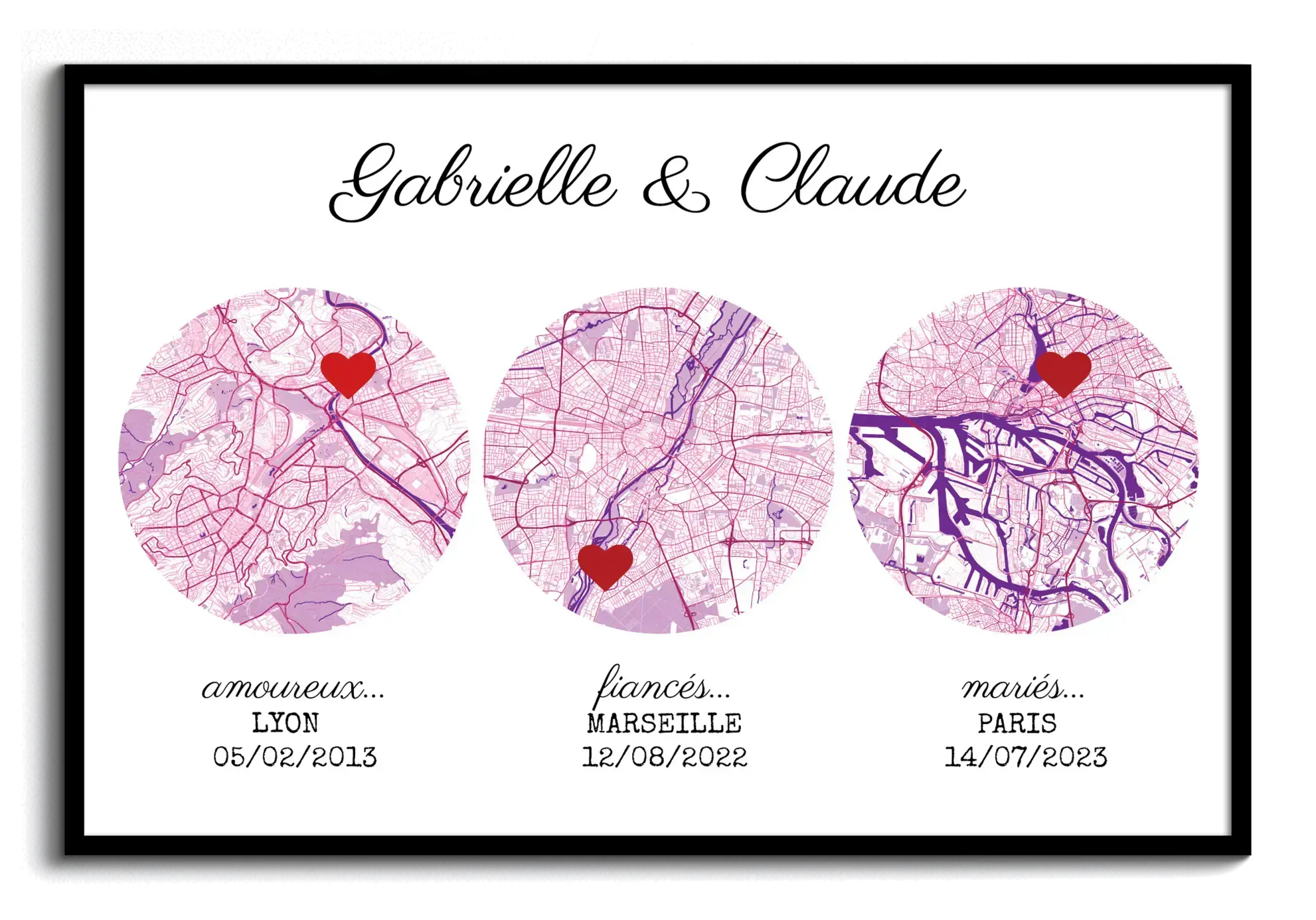 Que ce soit pour un cadeau de mariage, un anniversaire, un voeu de bienvenue dans une nouvelle maison ou pour immortaliser un lieu de naissance, nos cartes personnalisées se prêtent à de nombreux événements. Un objet mémorable pour des occasions spéciales telles que la Saint-Valentin, les anniversaires de rencontre ou de mariage.